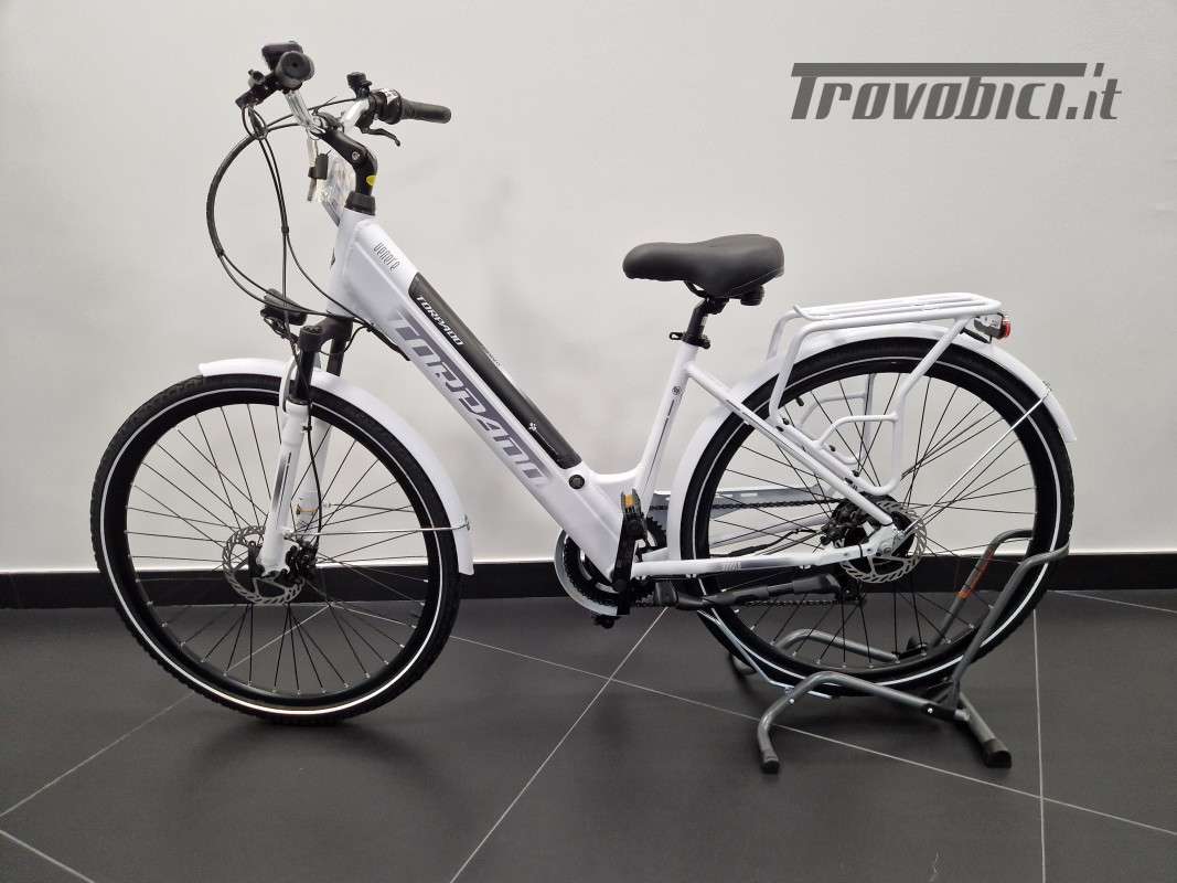 EBIKE TORPADO MODELLO VENERE CITYBIKE , RUOTA DA 28", TELAIO IN ALLUMINIO, FORCELLA AMMORTIZZATA, FRENI A DISCO IDRAULICI, CAMBIO SHIMANO 7V