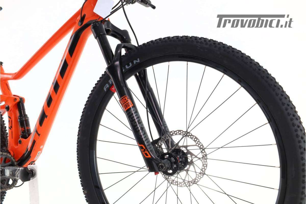 Taglia M: da 165 cm a 179 cm | Bicicletta usata e ricondizionata | La Scott Spark RC 900 Team è la bicicletta da montagna ideale per gli amanti della velocità e delle prestazioni. Con il suo telaio leggero in carbonio e geometria ottimizzata, offre un´esperienza di guida eccezionale su terreni difficili. Dotata del sistema di trasmissione Sram GX, garantisce cambi precisi e fluidi in qualsiasi situazione. La sua sospensione doppia fornisce un controllo superiore e comfort in discesa, mentre le ruote di alta qualità assicurano un´aderenza perfetta. Questa bicicletta è perfetta per chi cerca di competere o godere di avventure in montagna con stile ed efficacia. | Bici usata ricondizionata · 1 anno di garanzia · Immagini reali · Finanziamento da 158 € in 12 mesi · Bicicletta Mountain Bike doppia sospensione · Telaio in Carbonio · Taglia M: da 165 cm a 179 cm · Dimensioni della ruota: 29" · Deragliatore posteriore: · 12 Velocità velocità · Cassetta: 10-50-T · Leve del cambio: Sram GX · Pedivelle: Sram GX · Corone: 34-T · Freni: Shimano SLX · Ruote: · Forcella: RockShox SiD · 100mm di escursione · Ammortizzatore: Fox Nude · Materiale della potenza: Alluminio · Manubrio: · Reggisella: Alluminio.