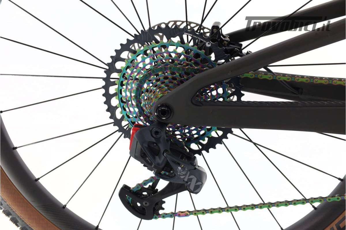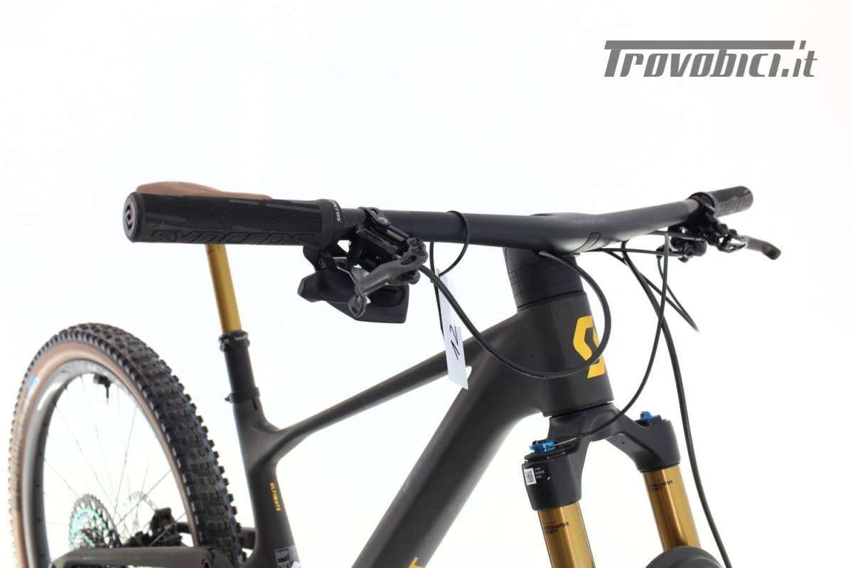 Taglia S: da 153 cm a 168 cm | Bicicletta usata e ricondizionata | La Scott Spark RC 900 Ultimate è la bicicletta da montagna definitiva per i ciclisti che cercano prestazioni e leggerezza. Dotata del sistema di trasmissione Sram XX1 AXS, offre cambi precisi e rapidi, ideali per terreni impegnativi. Il suo telaio in carbonio ultraleggero e la geometria ottimizzata garantiscono una manovrabilità eccezionale e comfort su lunghe distanze. Con sospensione doppia che assorbe gli urti, questa bicicletta è progettata per conquistare qualsiasi sentiero. La Spark RC 900 Ultimate è la scelta perfetta per chi desidera portare la propria esperienza in montagna al livello successivo. | Bici usata ricondizionata · 1 anno di garanzia · Immagini reali · Finanziamento da 458 € in 12 mesi · Bicicletta Mountain Bike doppia sospensione · Telaio in Carbonio · Taglia S: da 153 cm a 168 cm · Dimensioni della ruota: 29" · Deragliatore posteriore: · 12 Velocità velocità · Cassetta: 10-52-T · Leve del cambio: Sram XX1 AXS · Pedivelle: Sram XX1 · Corone: 32-T · Freni: Trickstuff Piccola · Ruote: Syncros Silverton 1.0 · Forcella: Fox 34 Factory Kashima · 130mm di escursione · Ammortizzatore: Fox Nude · Materiale della potenza: Carbonio · Manubrio: · Reggisella: .